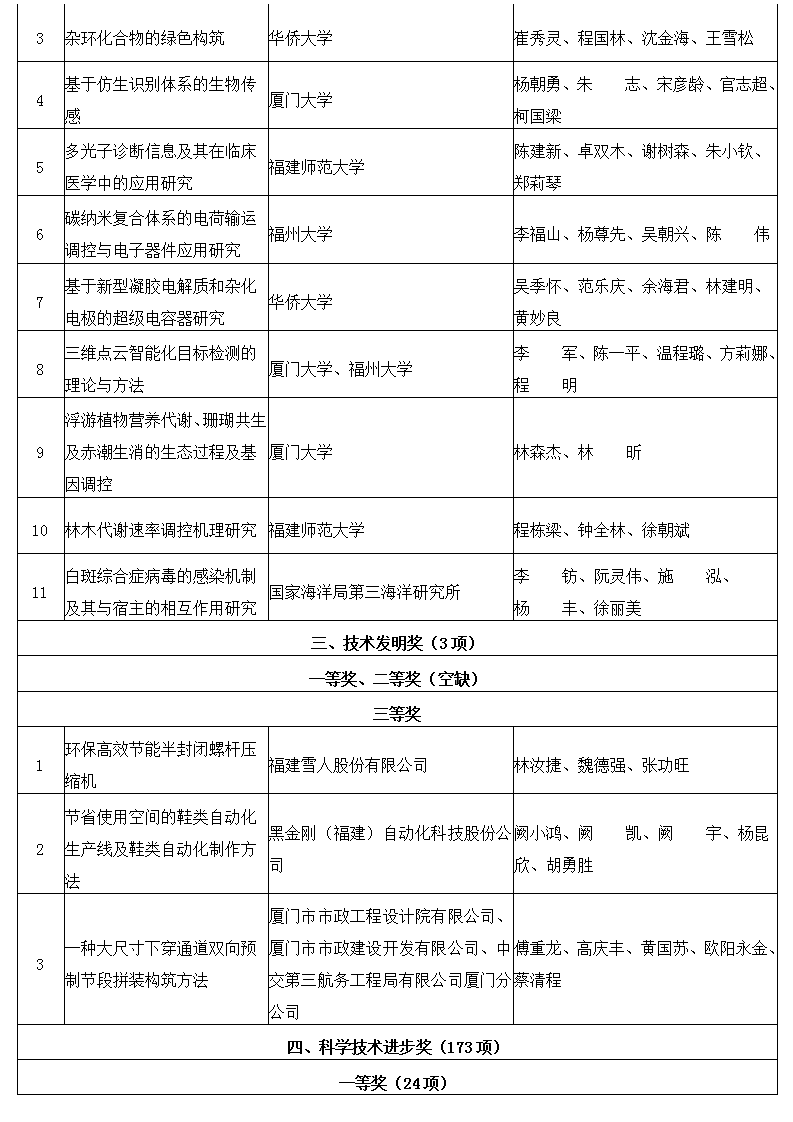 三、授予“环保高效节能半封闭螺杆压缩机”等3项成果福建省技术发明奖三等奖(一、二等奖空缺)。