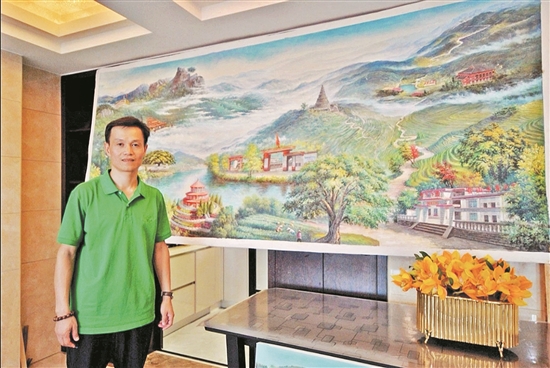 “这算是给家乡的‘特殊礼物’。”吕耀华说,油画的主题是讴歌曲家乡美丽山河和广大人民群众的美好生活,他把这幅画献给父老乡亲,表达对新中国成立70周年的美好祝福。