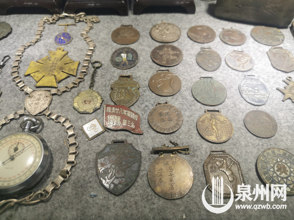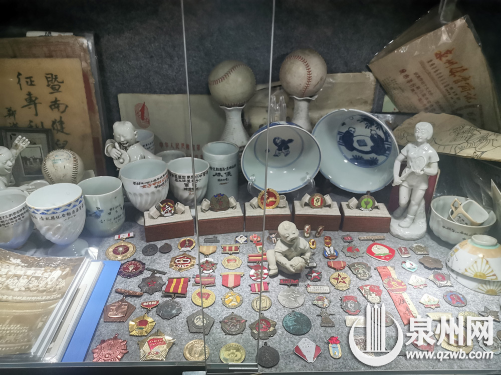 几十年前的纪念章、纪念杯、垒球、瓷器等物件,还原当年泉州人丰富的体育生活。