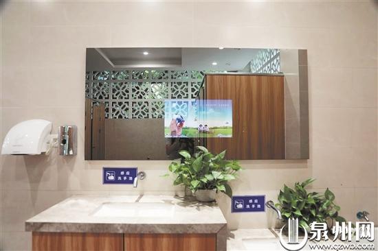 临漳门智慧公厕内洗手台配有多媒体显示器 (施远圻 摄)