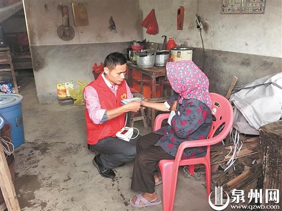 泉州网11月23日讯 (记者 廖培煌)在惠安县的村里村外、田间地头,人们经常会看到一群特殊的乡村医生,他们身穿红色志愿服、背着医药箱,走村入户巡诊,他们把免费体检、健康指导和送医送药的志愿服务活动,送到农村残疾人、孤寡老人、贫困户等人群的身边。