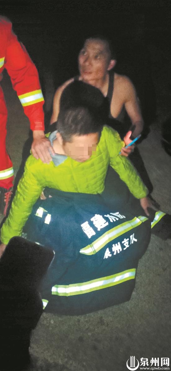 他当即双手用力抱住男子,这才把男子“固定”住。这时,在岸上的陈伟华开始往回拉绳子,他则连拖带抱,花了四五分钟才将男子救到岸边。