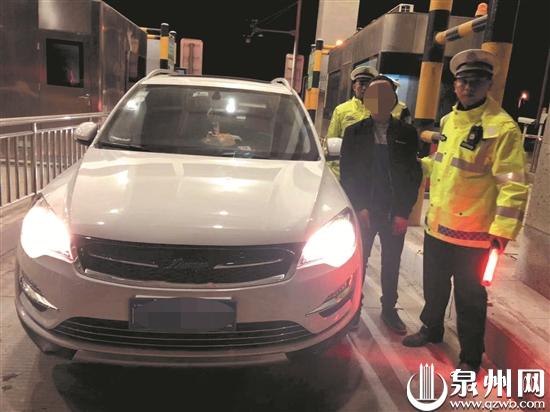 当晚,泉州高速交警支队四大队民警在辖区晋江龙湖收费站入口设卡执勤,10时许,一辆白色小轿车引起民警的注意,当司机摇下车窗,一股酒味飘了出来,而司机的1岁儿子以及怀孕3个月的老婆也乘坐在车内。