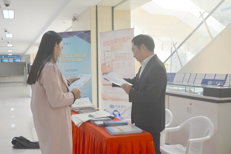 11月29日,兴业银行泉州东海支行在丰泽区东海大厦开展建筑工人实名制管理和工资专户设立、工资代发等政策宣传活动。
