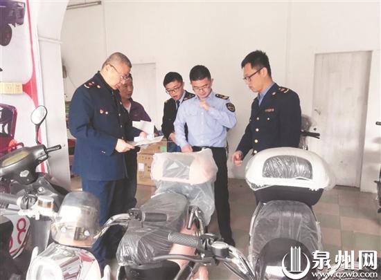 执法人员检查电动自行车商家