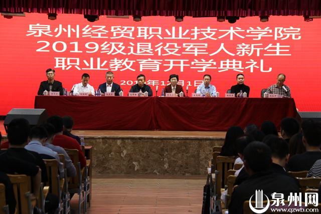 泉州网12月4日讯(记者洪荣堆 文/图)12月1日,泉州经贸职业技术学院2019级退役军人新生开学典礼在学院大礼堂举行。