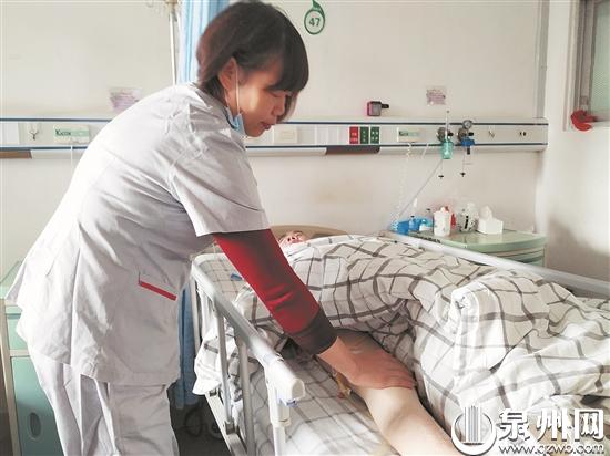 记者在泉州市医高专附属人民医院见到了正在护理脑膜炎患者的护工康雪琴。52岁的康雪琴,四五年前还在做保姆,而后参加培训,成为一名专业的护工。