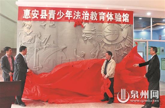 泉州网12月23日讯(通讯员杨雪卿 温仪 记者张文璟 文/图)“发着法治之光的太阳、自由飞翔的白鸽、翩翩起舞的莘莘学子,寓意着青少年在法治教育的阳光下快乐成长……”揭下“红盖头”,惠安青少年法治教育VR体验馆的浮雕墙跃入人们眼帘。日前,该体验馆在惠安嘉惠中学正式揭牌启用。