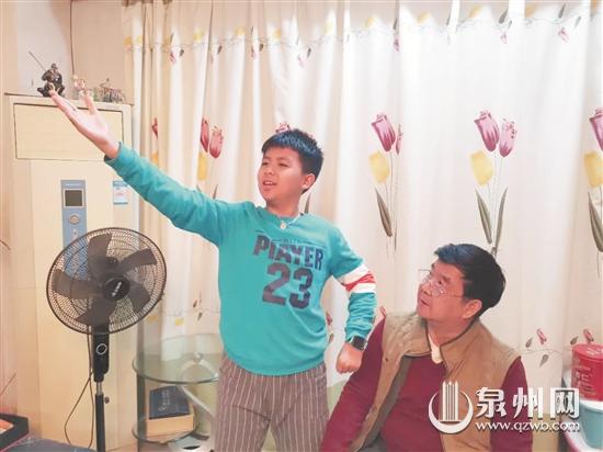 泉州网12月25日讯 (通讯员 施远圻 记者 张素萍 文/图)“一、二、三,走!”在泉州市新隅小学多媒体教室,时常看到一老一少两位老师为学生排练高甲戏动作。老者坐在椅子上观看,时而起身点评;青年人站在一旁,边喊节奏边教学生。配合默契的二人,是一对在艺术路上互相影响、互相接力的父女——张天鹏和张晓白。