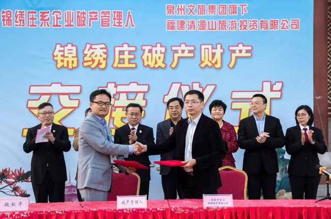 今日,锦绣庄破产财产交接仪式在原锦绣庄民间艺术园举行。至此,原锦绣庄民间艺术园的土地使用权及地面建筑物正式移交至泉州文旅集团全资子公司福建清源山旅游投资公司。