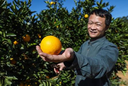 “农户在果园里工作,可以赚四笔钱,首先是土地流转过程中产生的地租,然后还有在基地劳动的工资,除此之外农机具等相关器械设备和材料的租用金,加上年底橙子上市后的分红,一年收入是以前的五六倍。”