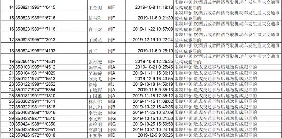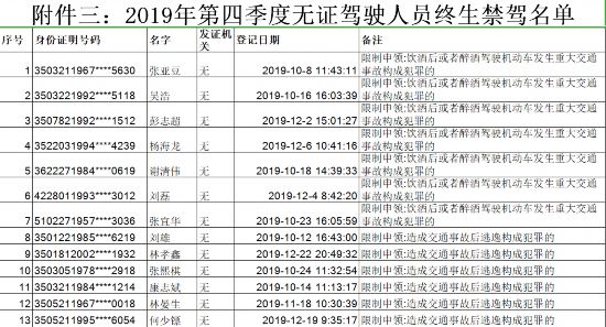 原标题:福建交警曝光2019年第四季度98名终生禁驾人员