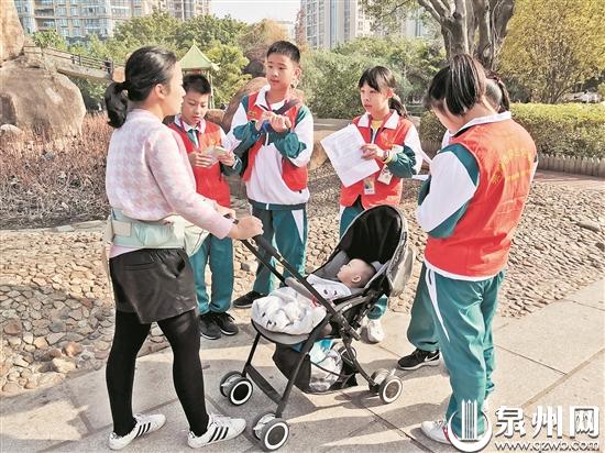 “2020年,义务教育学校取消各类特长生招生”“关于加强我市公共场所母婴室设施建设的建议”,带着泉州市民关注的热点话题以及市政协委员的建议,昨日上午泉州市学生记者团的小记者们穿着采访马甲、拿着采访本,兵分两路前往鲤城区实验小学、泉州七中初中部和浦西万达广场、刺桐公园进行采访。采访过程中,小记者们问老师,访校长,采市民,倾听部门声音,了解市民心声,收集各方建议。