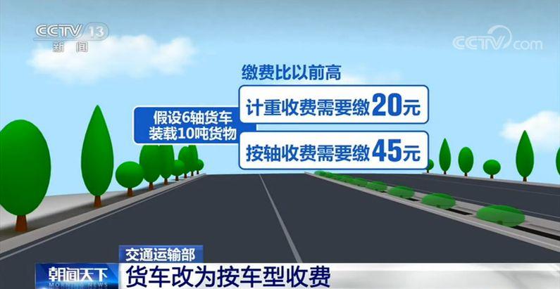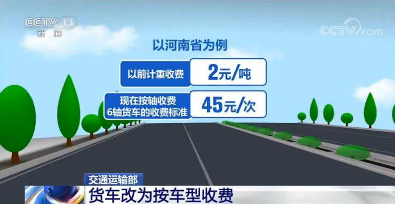以河南省为例,以前计重收费为每吨2元,现在按轴收费6轴货车的收费标准为45元/次。