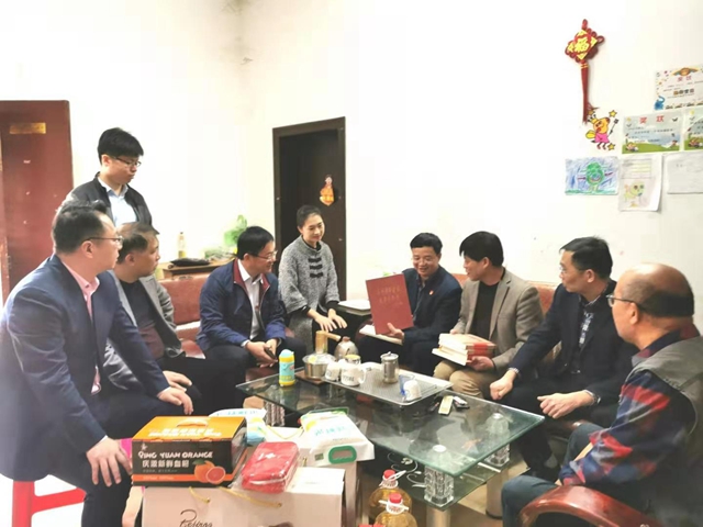 慰问团到党员家中送上慰问金与节日物品。(庄金泉 摄)