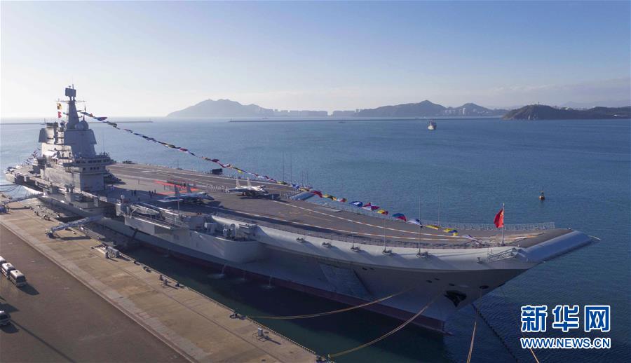 2019年12月17日,我国第一艘国产航空母舰山东舰在海南三亚某军港交付海军。经中央军委批准,我国第一艘国产航母命名为“中国人民解放军海军山东舰”,舷号为“17”。这是2019年12月15日拍摄的停靠在海南三亚某军港的山东舰(无人机照片)。 新华社记者 李刚 摄