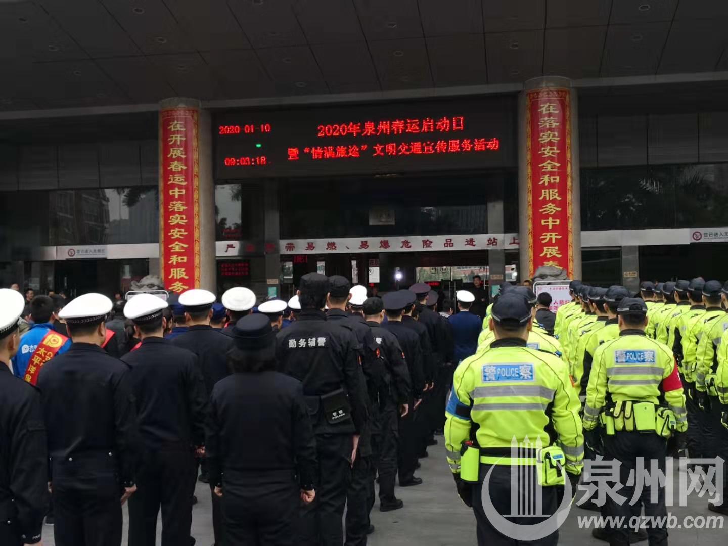 泉州网1月10日讯(记者 卢珊珊/摄 通讯员 蒋国栋)10日, 2020年春运大幕开启,泉州市委宣传部、文明办,市公安局等12个部门在泉州汽车客运中心站隆重举行了2020年春运启动日暨“情满旅途”文明交通宣传服务系列活动。