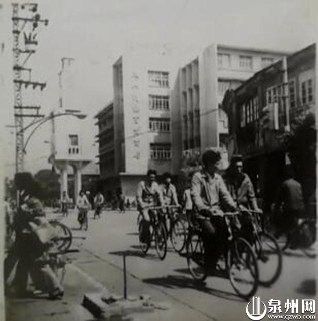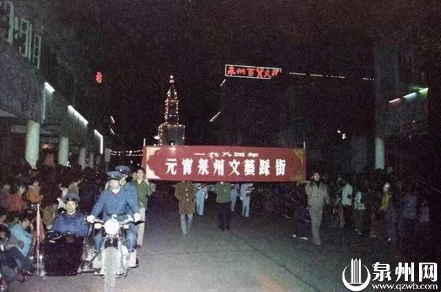 1984年泉州元宵文艺踩街活动中,在中山中路可以看到钟百楼上的“泉州百货大楼”几个字,如今已不存在。