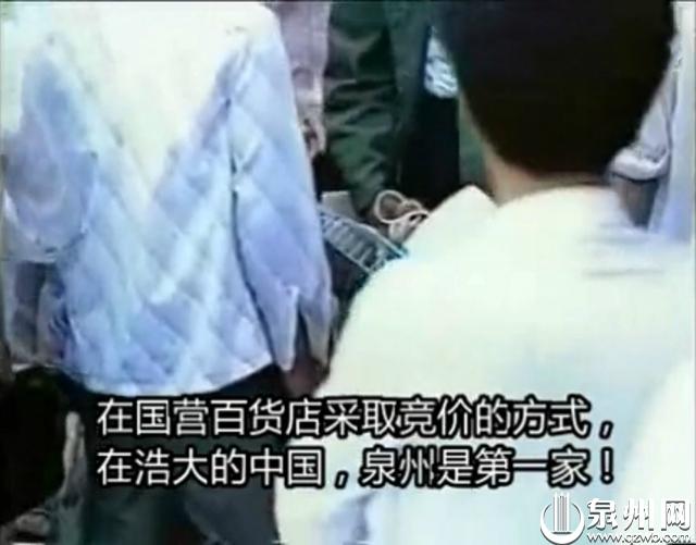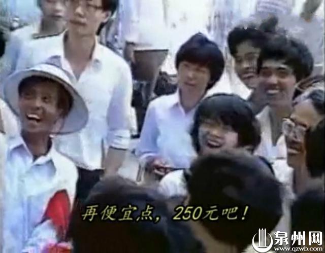 面对从未见过的当街商品拍卖活动,泉州市民感觉新奇有趣,纷纷笑着砍价。一台原价700元的录音机,叫价300元,市民们喊着:“250元吧!”