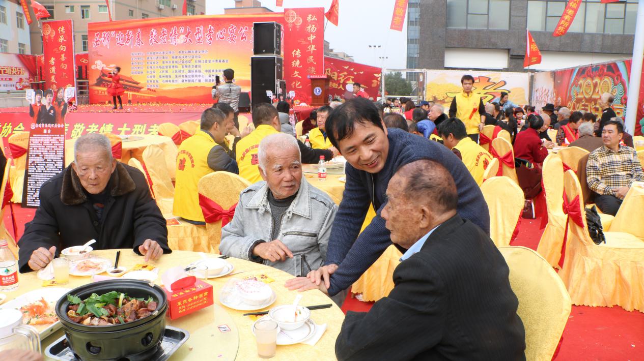“一年忙到头,趁过年请老人吃一顿饭,让他们感受家的温暖,是我们后辈应该做的。”据福建省扶老公益协会、泉州市泉城公益协会会长黄明水介绍,老龄化问题越来越严重,老年人口中有一部分是留守老人,相对于物质上的供给,他们更缺乏的是精神上的陪伴。希望通过此次活动,唤起社会对留守老人的关心;同时也希望大家多关心家里老人,尽量挤出时间陪伴他们,让他们安度晚年。石狮江夏堂中青筹备会秘书长黄建议说:“这个活动也得到了善心人的支持,主要是弘扬中华文化,今天要把这些发扬光大。”