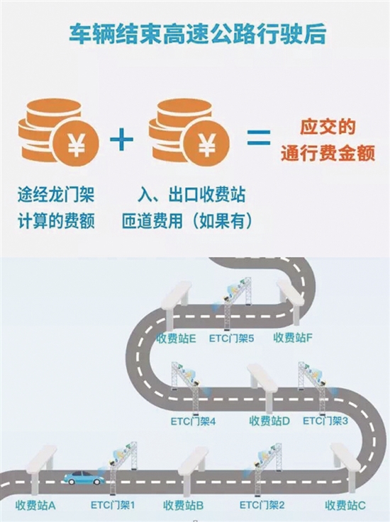 据介绍,今年1月1日以来,经高速路通行省界时,不再需要停车交卡、交费和领卡,而是直接通过。安装ETC的车辆,通过ETC门架实现“分段计费、分段扣费”,在高速“免费”时段,ETC也会根据规定的免费时间调成“免费模式”;未安装ETC的车辆在驶入高速公路时则需在入口收费站使用人工通道领取复合通行卡(CPC卡),通过ETC门架计算通行费并写入CPC卡中,驶出高速公路时在收费站出口交还CPC卡并缴纳全程通行费,实现“分段计费、出口收费”。