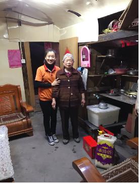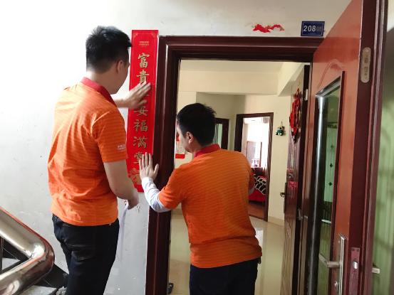 志愿者们带着粮、油、米、面前去探望困难家庭,与老大爷、老奶奶们亲切交谈,张罗着帮忙张贴春联,营造节日氛围。平时少有走动的柯大爷拄着拐杖,笑吟吟的看着春联念“富贵平安福满堂……”,柯大爷的子女都说今天的柯大爷比往日精神多了;中风瘫痪的庄奶奶看到志愿者们的到来,激动着紧紧握住志愿者的手;心脏不好的郑奶奶,贴心的让她的子女为志愿者们指路,避免堵车……
