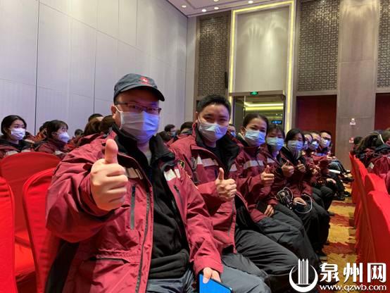 我们团队于1月26日下午在泉州完成集结,当晚奔赴福州与省里各兄弟单位的战友汇合。1月27日清晨在福州西湖会堂门口举行了宣誓仪式,然后分乘五辆大巴到达福州长乐机场,并于中午抵达武汉。飞机上,厦门航空为大家准备了精美的千纸鹤和吉祥铃铛,并且整个团队用拉春联的形式向大家展示了一同抗击病毒的决心和毅力,同行的各位战友备受鼓舞,坚信和全国各行各业的同胞一起,一定能够战胜新型冠状病毒这个恶魔。