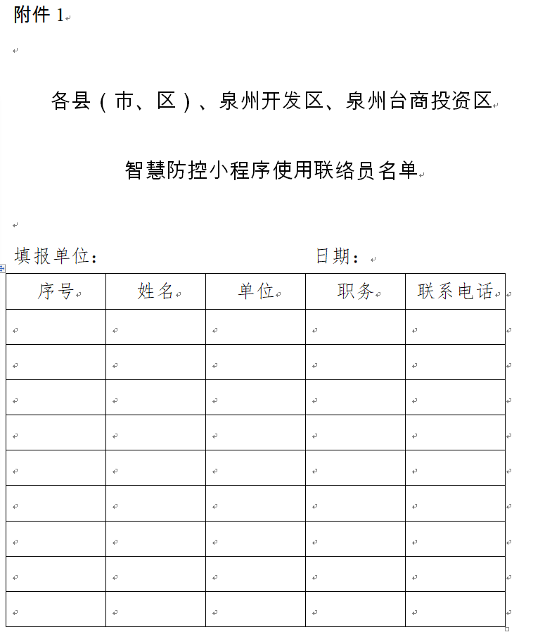 1.各县(市、区)、泉州开发区、泉州台商投资区智慧防控小程序使用联络员名单