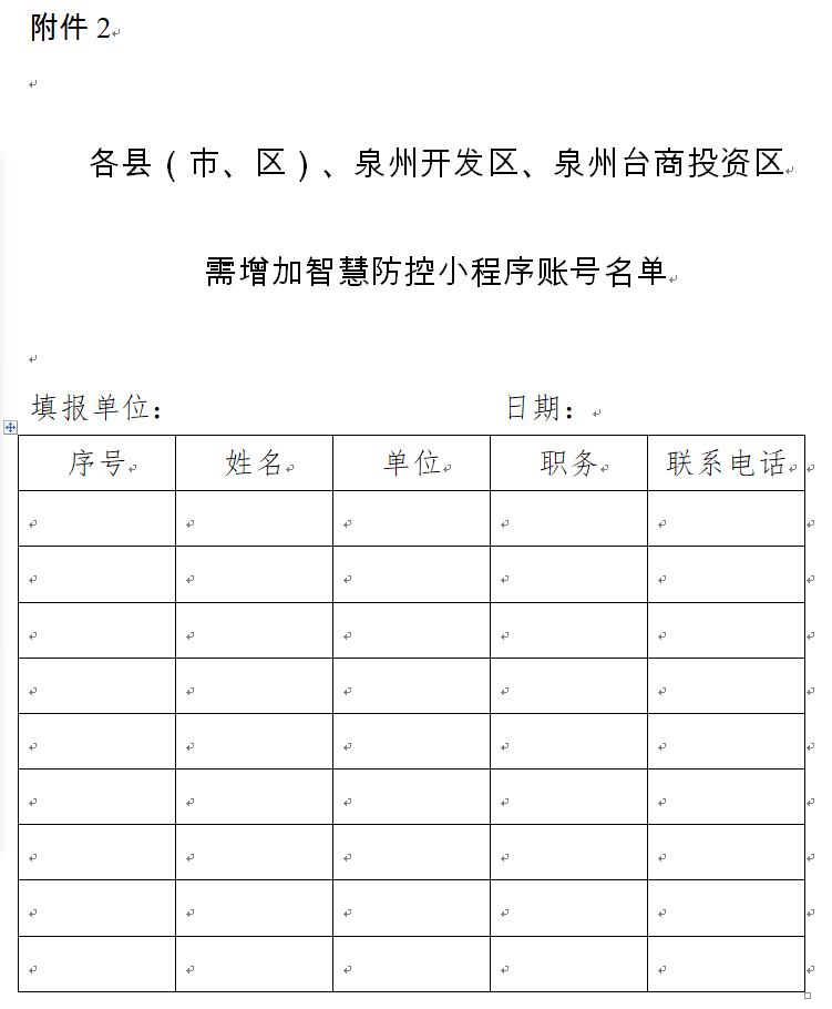 2.各县(市、区)、泉州开发区、泉州台商投资区需增加智慧防控小程序账号名单