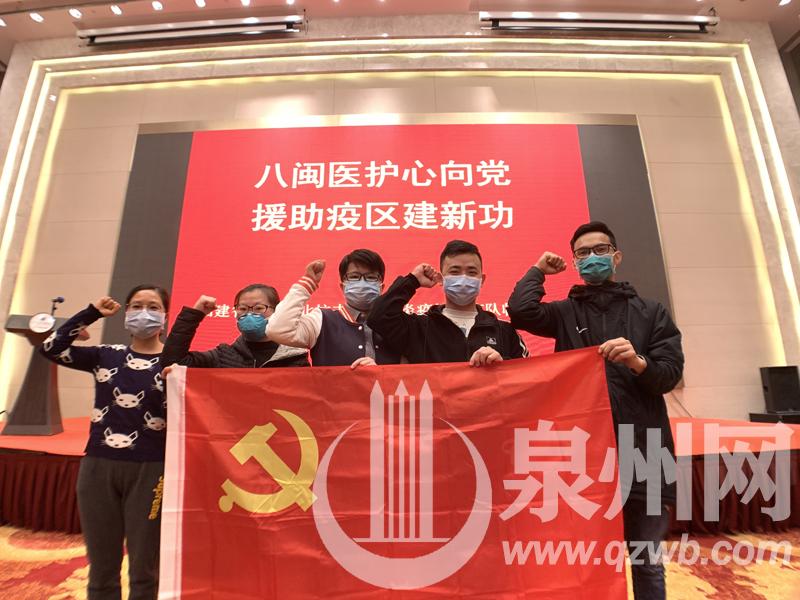 1月31日下午,福建省支援湖北抗击新冠肺炎疫情医疗队临时党委在武汉驻地组织开展了“八闽医护心向党,援助疫区建新功”的党日活动,组织全体党员重温入党誓词。