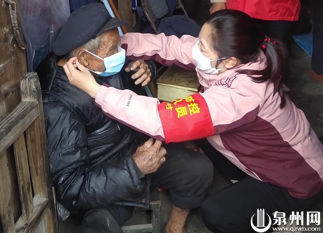 省派泉州驻永春杨冬梅坑仔口镇魁斗村第一书记杨冬梅为村里老人佩戴口罩