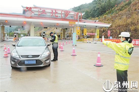洛江交警大队疫情防控党员突击队成员林茜茜在洛江北(罗溪)高速出口查验站展开工作(王东源 摄)
