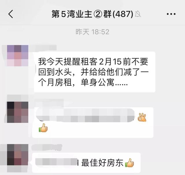 6日下午,在南安市水头第5湾的业主群里,一个名为Alice的业主,在群里分享了她为来自江西租客免一个月房租的信息,被群里的业主们纷纷称之为“好房东”。