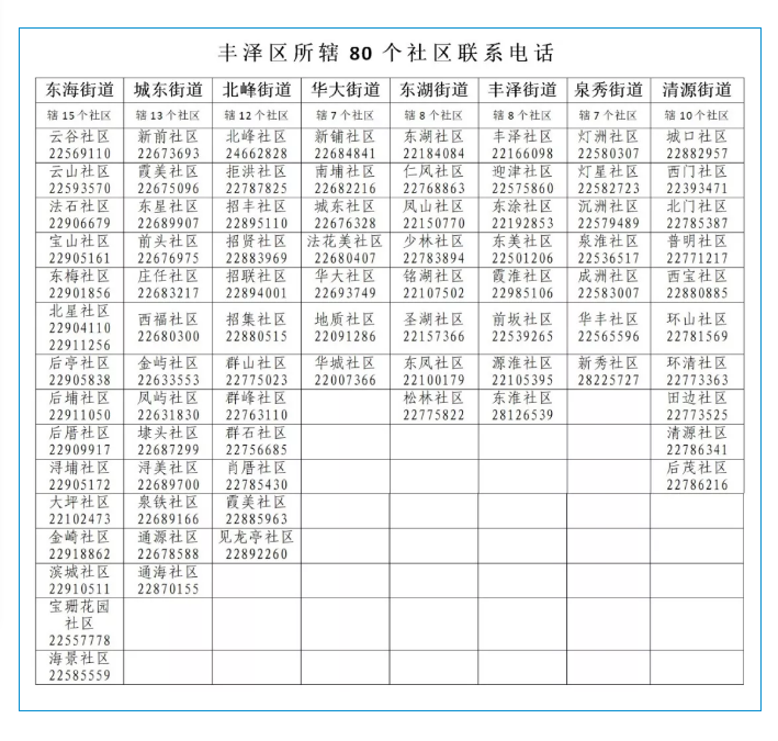 附件:丰泽区所辖80个社区联系电话
