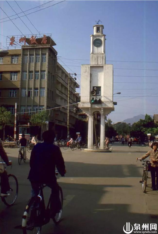 如今的泉州饭店原址。当年中山路三座岗亭之一圆型钟楼岗亭已变成方型警室。