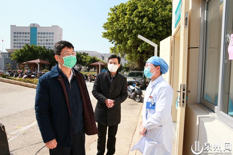 市委书记康涛看望慰问福建医科大学附一闽南医院(泉港区医院) 医护人员,检查医院防护工作。(陈英杰 摄)