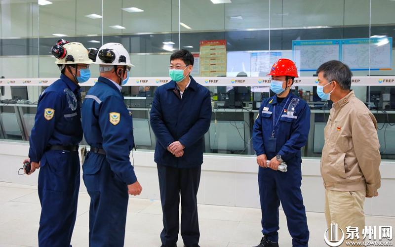 市委书记康涛看望慰问联合石化公司员工,调研疫情防控和复工复产工作。(陈英杰 摄)