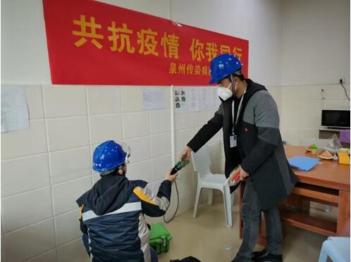 1月22日晚,台商分公司接到紧急通知,得知泉州市传染病院即将开诊,需立刻完成现场通信网络覆盖。分公司立即组织党团突击队奔赴现场,党员黄冬冬同志带领团队现场制定办公区、住院区通信网络建设方案,推进网络资源迁移调测。历经4个小时奋战,党团突击队完成线路布放200多米,开通政务内网和医保专线,接通疾控中心平台,迁移调通医疗办公电脑5台、热线电话2部。在接连多日回访服务过程中,黄冬冬还带领团队为市传染病院提供了政务内外网、医保专线、STN专线、光纤宽带、热线电话、天翼手机及Mifi等信息化服务。