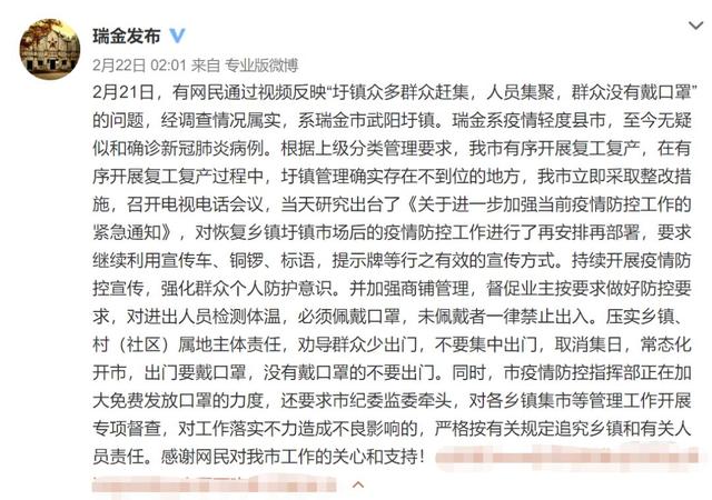 视频中标示着2月21日,集市上人头攒动、蔚为壮观,这里面但凡有一个感染者,后果简直不堪设想。对此,当地政府连夜回应,宣布将立即采取整改措施。