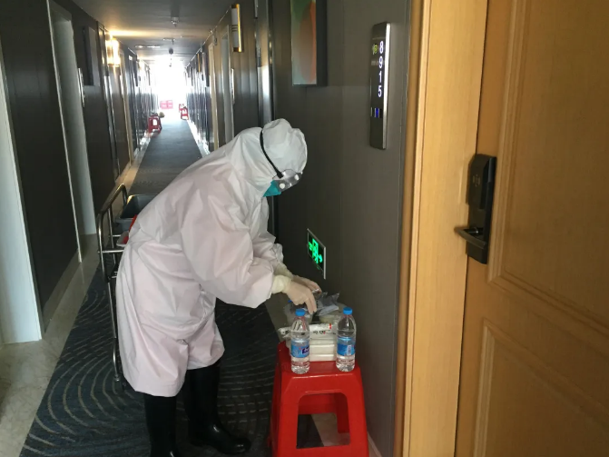 城东驻点医务人员在隔离观察点给密切接触者送餐