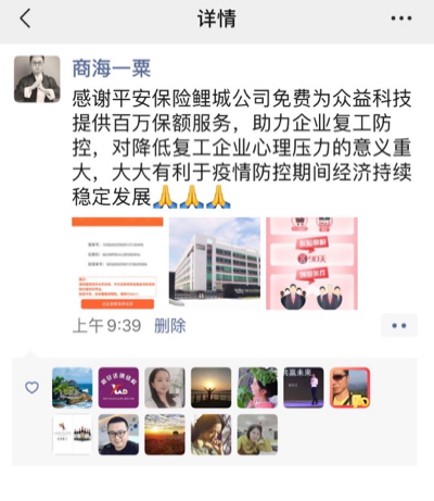 2月7日,平安产险宣布为全国10万家小微企业无偿提供专属风险保障,每家企业保额100万元,总保障金额高达1000亿元,帮助小微企业铸牢坚实后盾,渡过疫情难关。截止2月24日,平安产险泉州中心支公司已经为泉州区域内的1200多家企业提供免费的保险保障服务,获得众多小微企业的好评。平安产险泉州中心支公司也将继续以实际行动向全社会彰显保险业的行业价值和社会担当。