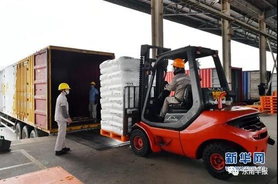 2月6日,福建联合石化公司生产的首批30吨聚丙烯无纺布原料准备发车。新华网发(庄国辉 摄)