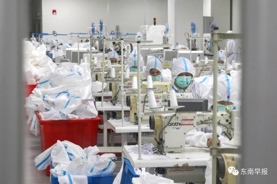 人员动起来,机器开起来,火热朝天,开足马力抢夺失去的一个月!泉州通过政企合作、跨界互助,展开全产业链的自救。