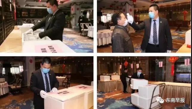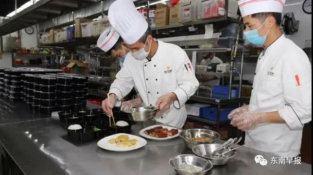 下午5点,丰鲤茶楼迎来一天当中最繁忙的时间段:全副武装的厨师在中央厨房里制作,分装打包后送至统一配送处。配送员完成体温测量、登记、系上食安封签等“规定动作”后,由专车实行无接触式配送。“2月10日起我们加入企业共享食堂计划,推出6款套餐,价格比往常低,卫生却更到位。”总经理助理邱宗满说,这是疫情中餐企的自我变革。