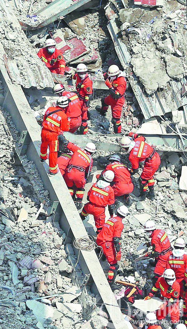 3月7日晚,泉州市鲤城区欣佳酒店突然坍塌,共71人被困。一场生死大救援迅即展开,来自全省各地的消防救援力量跨区域火速驰援,他们分片包干,不分昼夜,争分夺秒地搜救废墟中的被困者。
