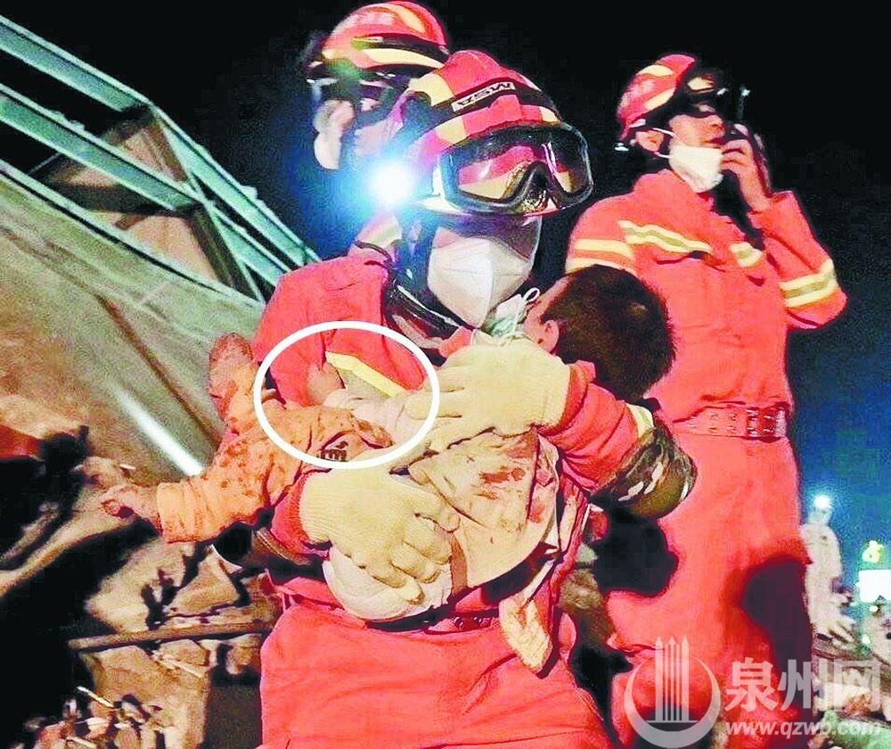8日凌晨,一名婴儿从废墟里被抱出来,消防员小心翼翼地用口罩蒙住他的眼睛。婴儿被抱住时,小手紧紧抓住消防员橘色上衣。这张被定格的照片让人不禁泪目,大家纷纷点赞,“他们是内心柔软的汉子,却用钢铁的身躯保护着我们。”