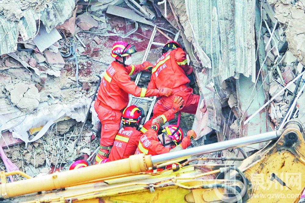 7日晚11时许,漳州市消防救援支队的50名消防员携带生命探测仪,破拆及个防装备等赶到现场。短暂的准备后,当晚12时,救援人员进入废墟搜救。