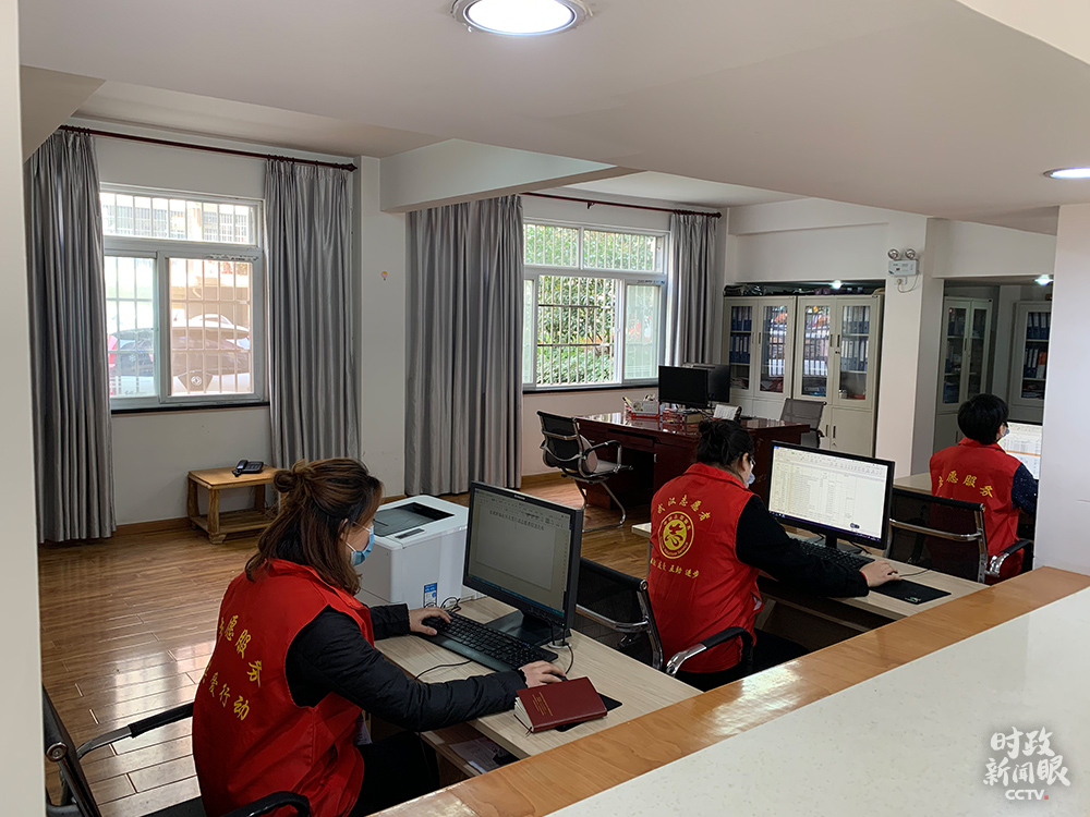 △在东湖新城社区党群服务中心服务的志愿者,负责信息登记、体温测量、站岗消毒等。(总台央视记者段德文拍摄)