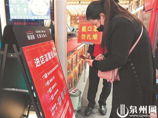 泉州市区刺桐路的领SHOW天地里有多家餐饮单位。近日,记者在赣湘楼菜馆看到,大门入口处设有体温检测及信息登记点,一名工作人员正在值班,因为刚好是饭点,前来用餐的顾客相对较多。据观察,顾客入店前,除了要测体温,还要提供行程记录。