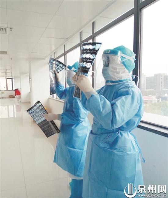 林连顺(右)正在查看患者的胸部影像